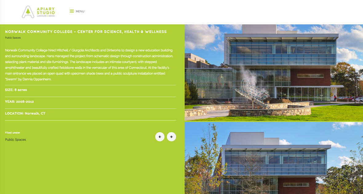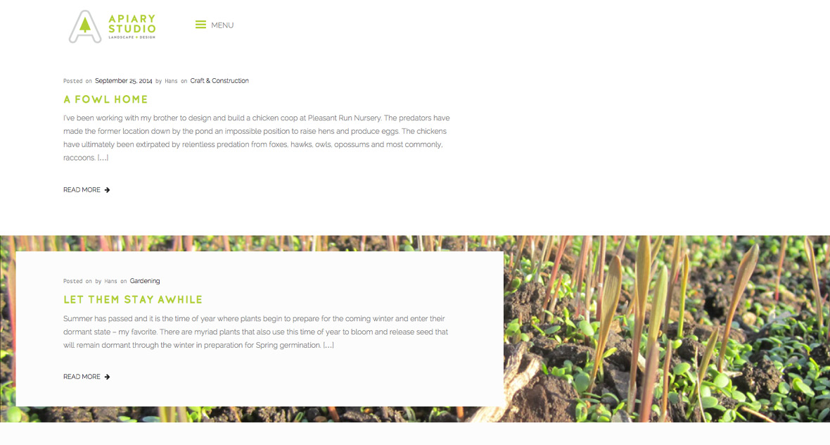 Apiary Studio is a landscape architecture firm and horticultural consultancy with offices in Brooklyn and Philly. Starting with a naming and strategy session, I crafted a brand aesthetic which focuses on the beautiful spaces and plantings created by the Apiary team. A clean design with an emphatic use of photography of architectural details, lush spaces, thriving flora, design concepts and schematic diagrams help illustrate the capabilities and quality of Apiary’s design. I also designed and developed the Apiary Studio website on WordPress.